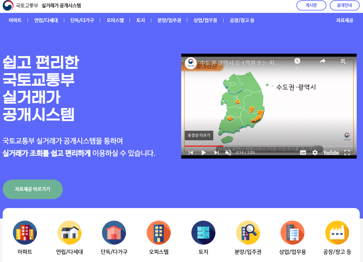 국토교통부 실거래가 공개시스템